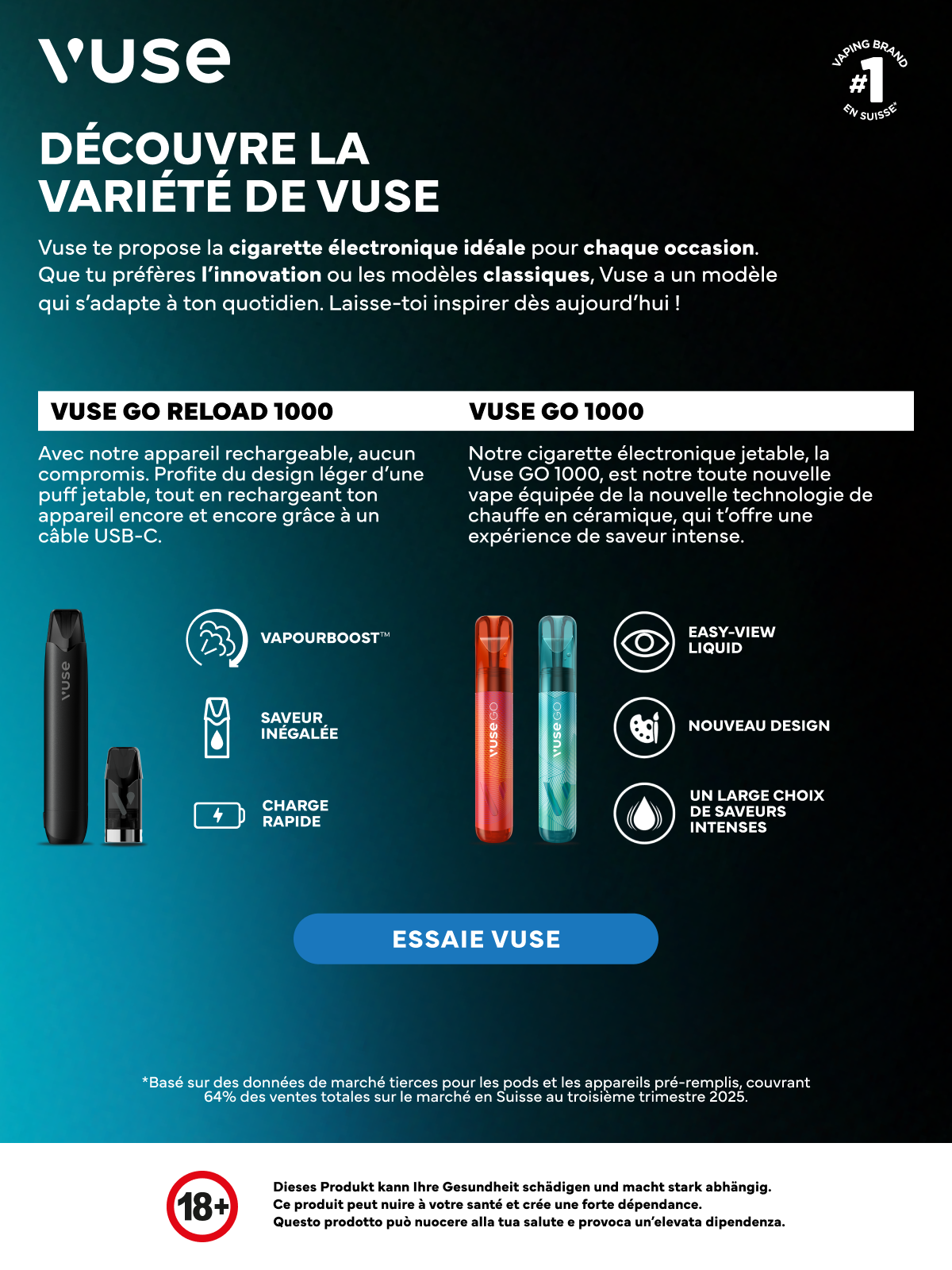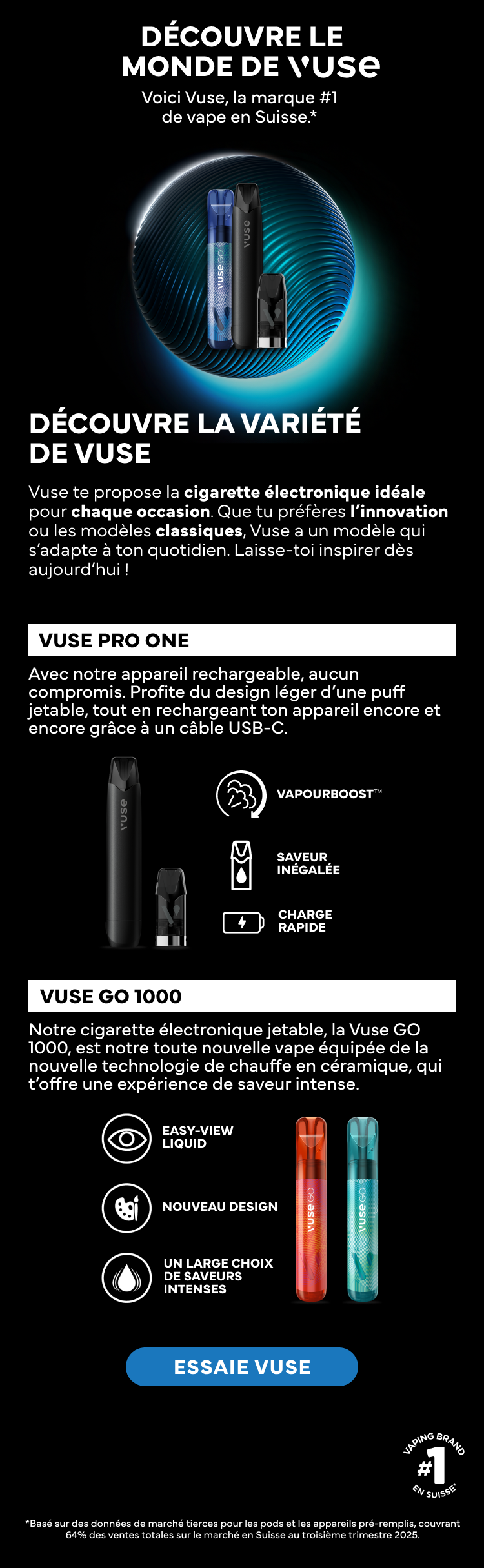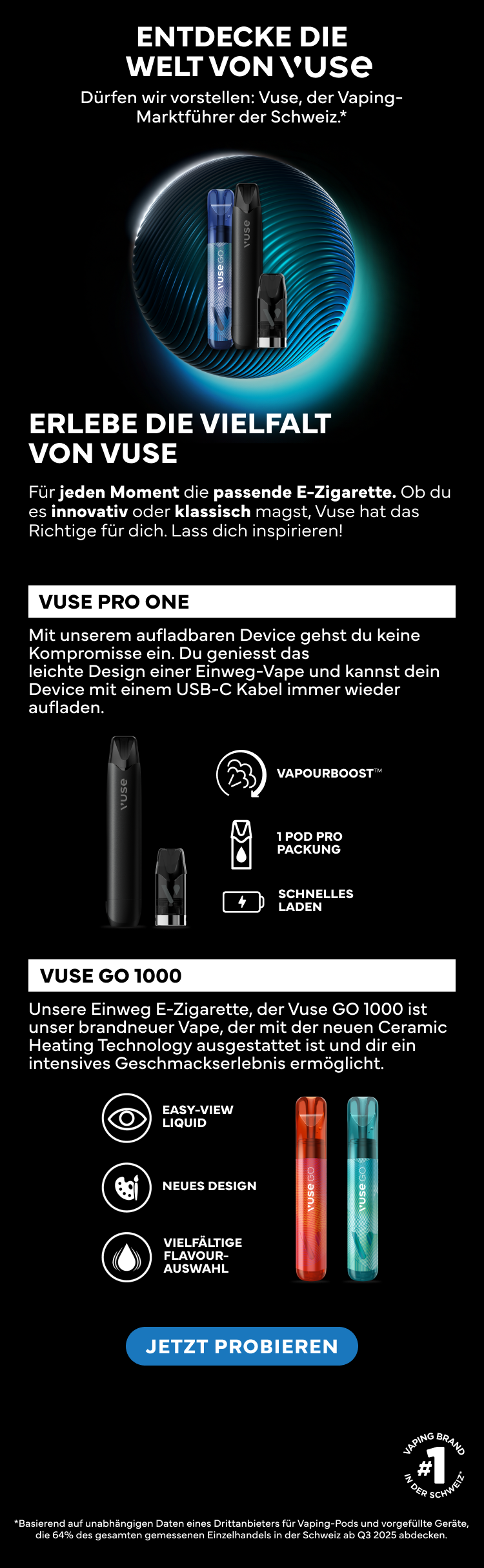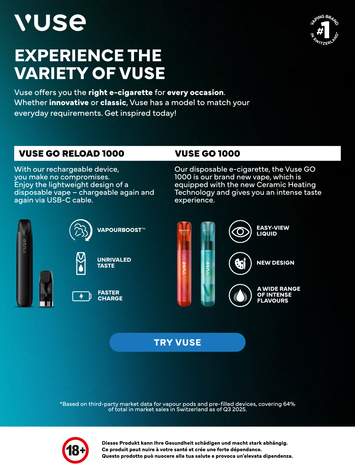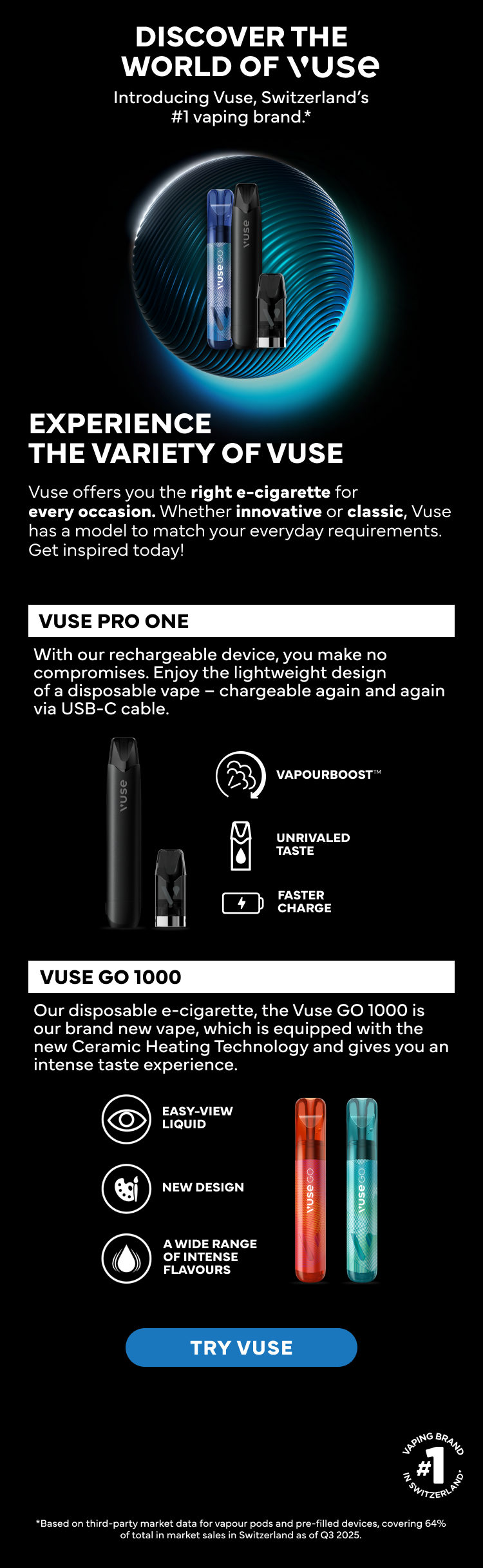 Introducing Vuse, Switzerland’s #1 vaping brand.*